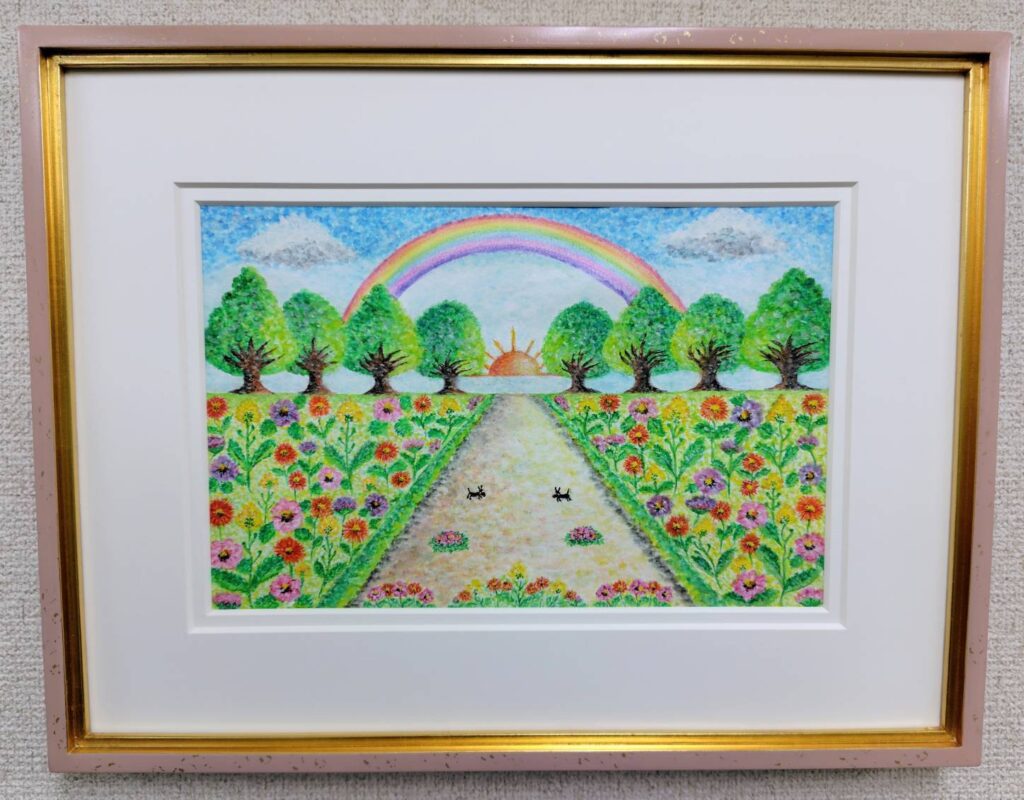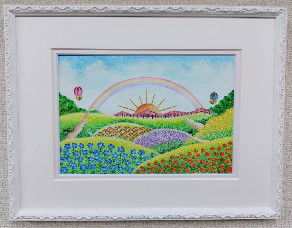 色とりどりの花や青々とした緑の木々を歩いた先の太陽の暖かさを表現しました。